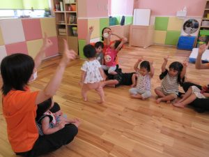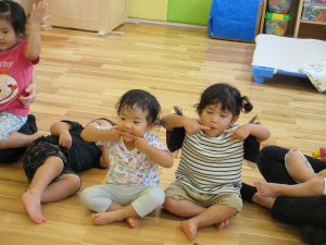 英語の歌遊びも、いつもノリノリの名護園のお友達です