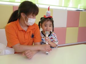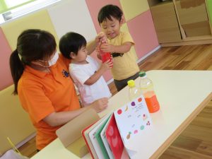 次にお手伝いしてくれたお友達がつくったのは、オレンジのジュース