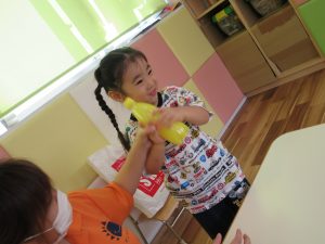 お誕生日のお友達がお手伝いをしてくれましたよ。