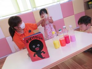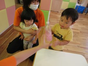 お水の入ったペットボトルを振って!振って!なんとジュースが出来上がります