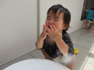 お写真でもお分かりいただける通り、とっても楽しんでお水に触れています。