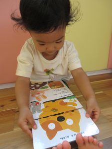 自分から絵本を手に取って読んだり、保育士に読んで!と