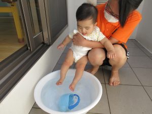 お天気の良い日が続き、お外では毎日お水遊びを楽しんでいます