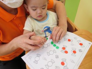 いちご組さんも座って一つのことに集中できるようになってきて、