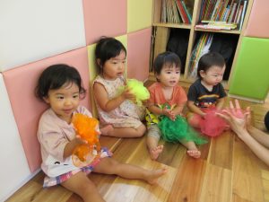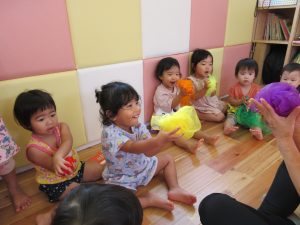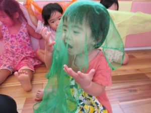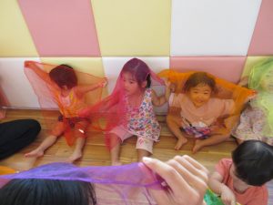今週もみんなが大好きなリトミックスカーフをたくさん使いましたよ![]()