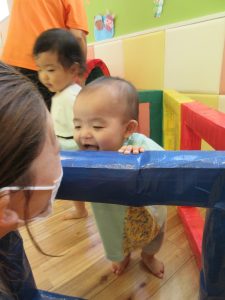 もも組さんのお友達もつかまり立ちをしながら