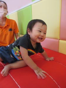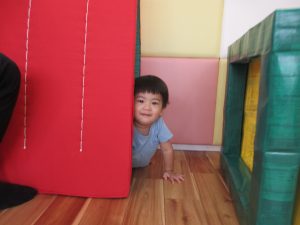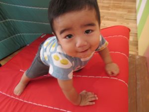 自分からハイハイしてマットやトンネルで遊べるようになりました。