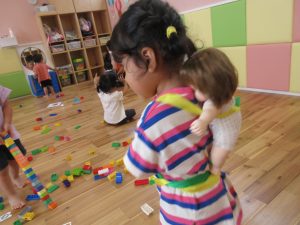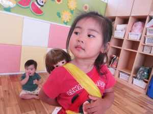 最近、りんご組さんはぽぽちゃんをおんぶして