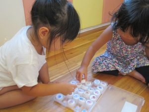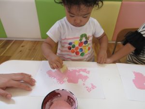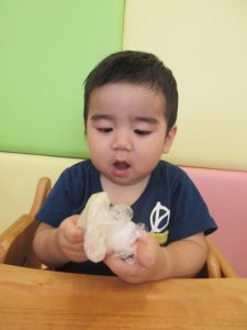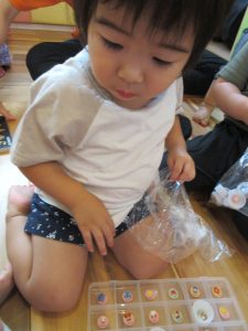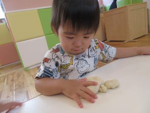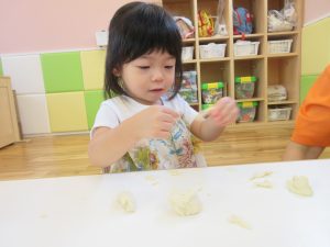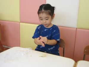 みんな真剣に小麦粉粘土をコネコネ![]()