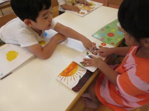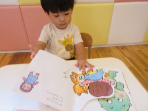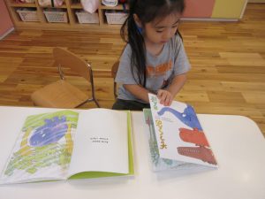 同じ種類の絵本を見つけて二冊並べて見ていましたよ![]()