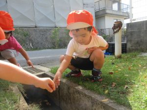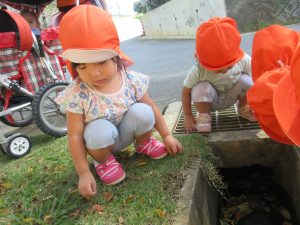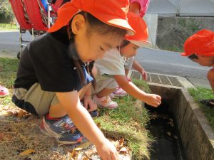 公園の端っこにお水が溜まっている溝があり、