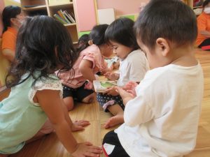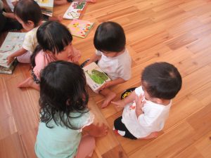 みんなで仲良く一冊を覗き込んで見ている姿も