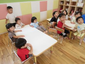 もも組さんのお友達はお椅子で待つ時など
