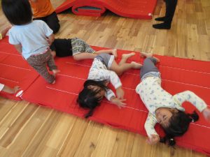 マットの上をゴロゴロ移動します![]()