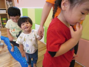いちご組のお友達も、もも組のお友達も