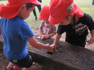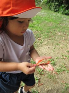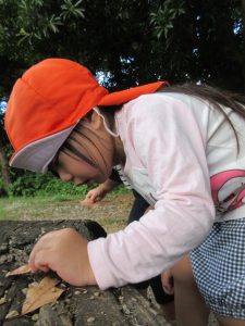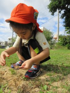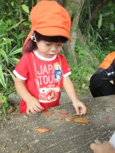 公園では、みんな小石や草、葉っぱなど夢中に