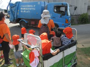 目の前に大好きなゴミ収集車が!!