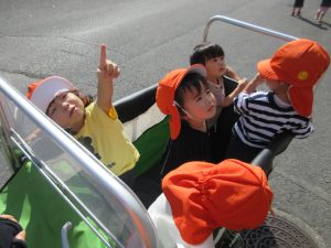 いちご組さんは立ち乗りバギーで、りんご組