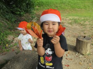 赤く色づいている葉っぱなどみんなに