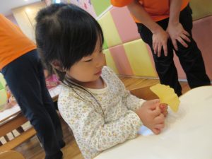 葉っぱに、みんなとっても興味津々で