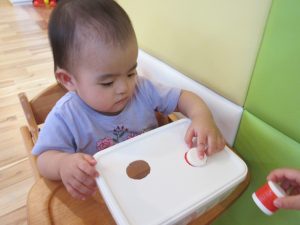 おもちゃをつまんでケースに入れる遊びも