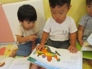 半袖でも充分ですが、午後はお昼寝の後に