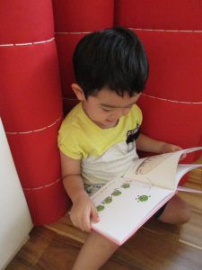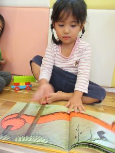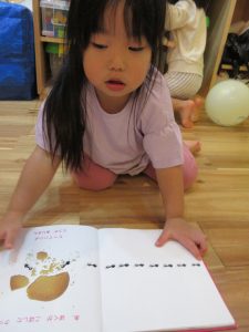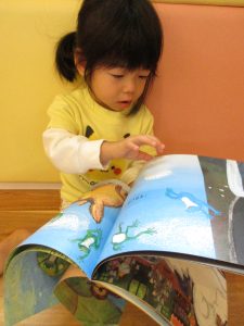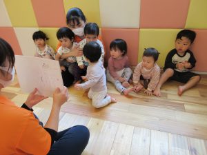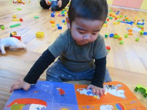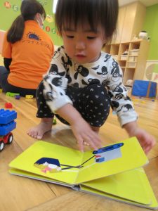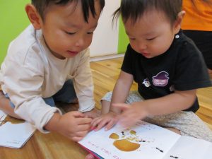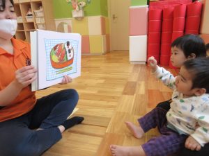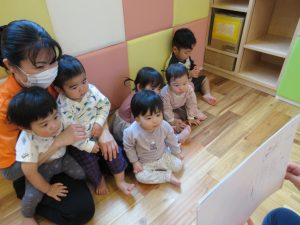 いちご組さんはお友達と一緒に見たり、絵本の