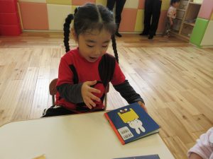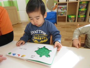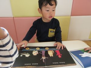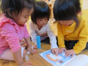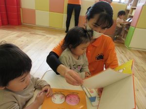 活動の間の絵本タイムや、お部屋遊びの時の