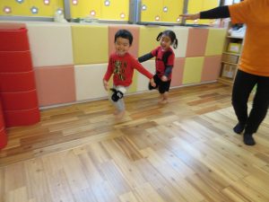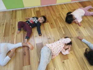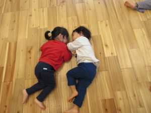 緩やかな曲が流れるとまた一斉に床にゴロン![]()