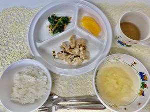 (年齢によって盛り付け量を変えて、提供しています。写真は普通食になります。)
