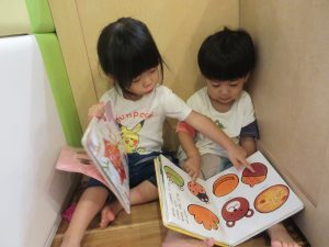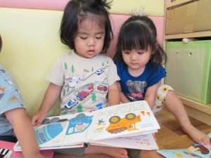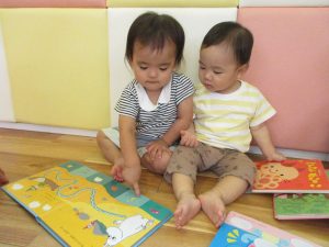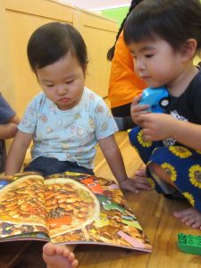 お友達と仲良く同じ絵本を楽しむ姿も