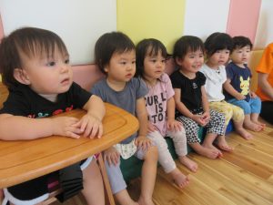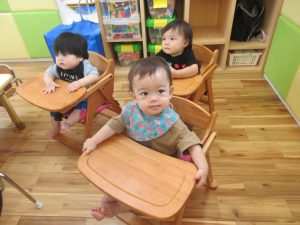 もも組さんもベビーチェアに座って