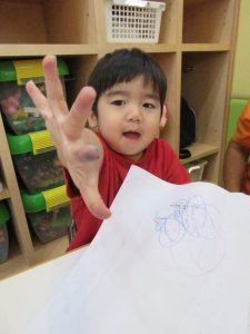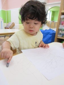 お絵描きを楽しむいちご組さん![]()