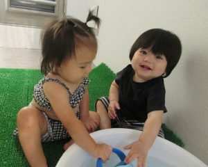 もも組さんもお水遊びに慣れにこにこ![]()