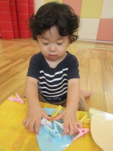 洗濯ばさみ遊びでは上手に挟んだり