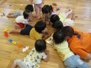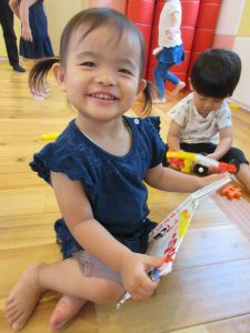 自由遊び中、一人のお友達がお部屋の真ん中に