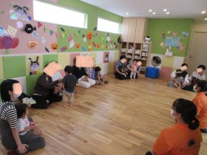 りんご組さんは保育士のお話を聞いて