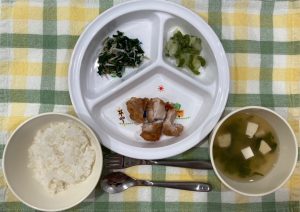 ご飯 味噌汁 鶏の唐揚げ じゃが芋ソテー ほうれん草のお浸し
