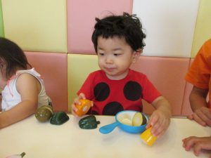 粘土をはめ込んでみたり遊び込む子たち![]()