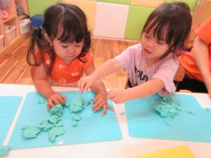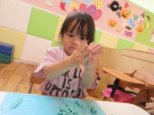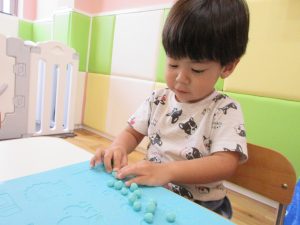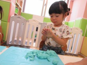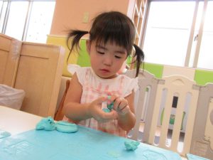 こねこねと粘土の感触を楽しみながら