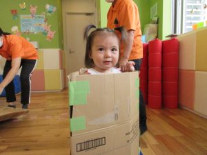 そのあとは段ボールで汽車ごっこをして