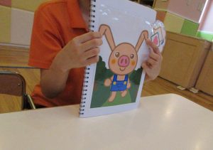 まずは3匹の子ブタの手袋シアター![]()