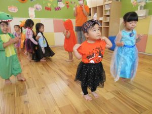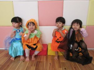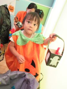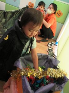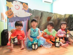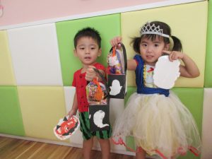 帰りは子ども達の製作した可愛いハロウィンバックに