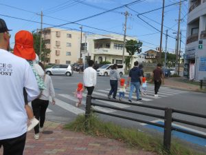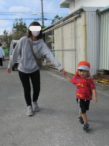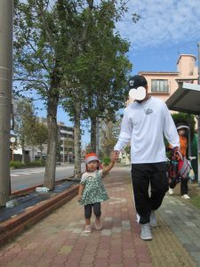 手を繋いで歩くコースを今日はママやパパと一緒に歩き