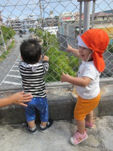 もも組さんいちご組さんも興味津々に