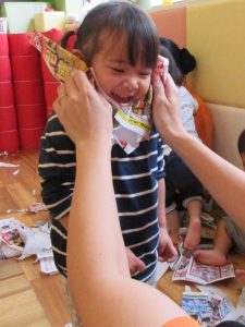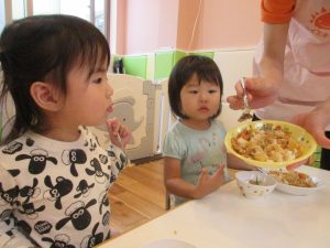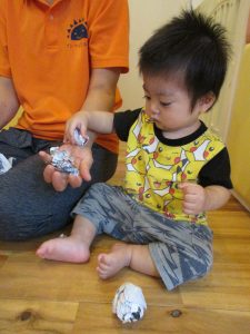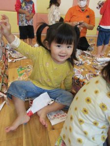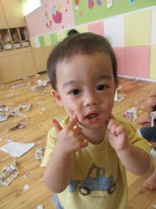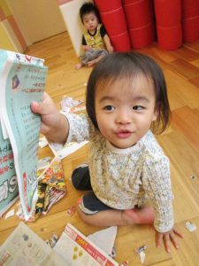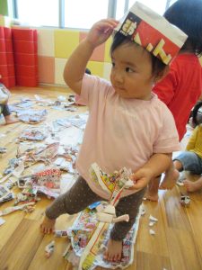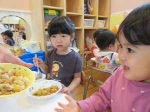 お兄ちゃんたちに混ざって楽しむもも組のお友だち