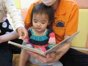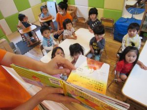 絵本を楽しんでいるいちご組さんです![]()