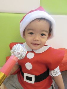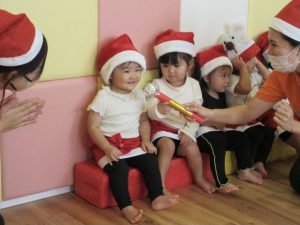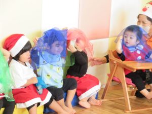 いないいないばあ!でサンタ帽もぽいっ(笑)
