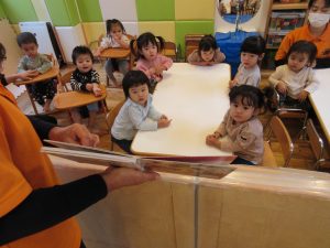 朝の会で「今日はお誕生会をするよ~」と伝えると