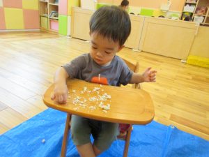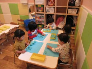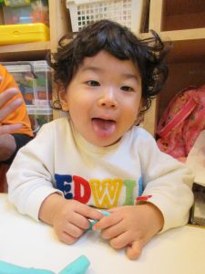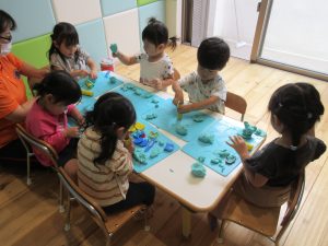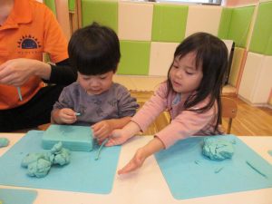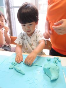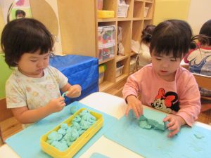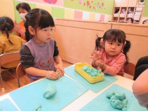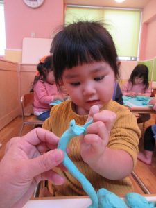 いちご組さんもあぶら粘土遊びを楽しんでいますよ